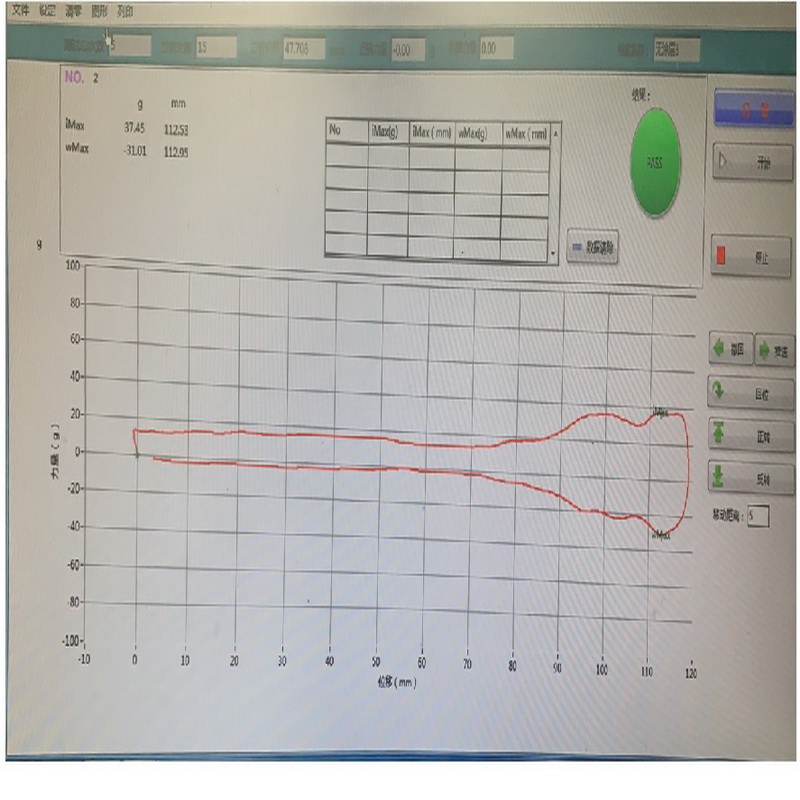 推送力值采集: 通过输送机构把导管送入模拟血管模型,在输送过程中,由力值传感器