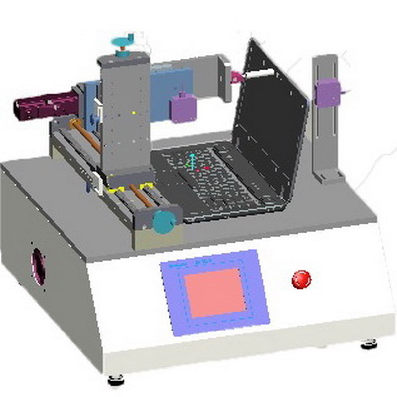显示器横向推拉试验机用于榴莲视频成人下载的上盖开合阻力的测试。前置红外位移传感器可测试上盖打开的位移量,后置位移传感器可以检测上盖在推力撤销后的振动情况。